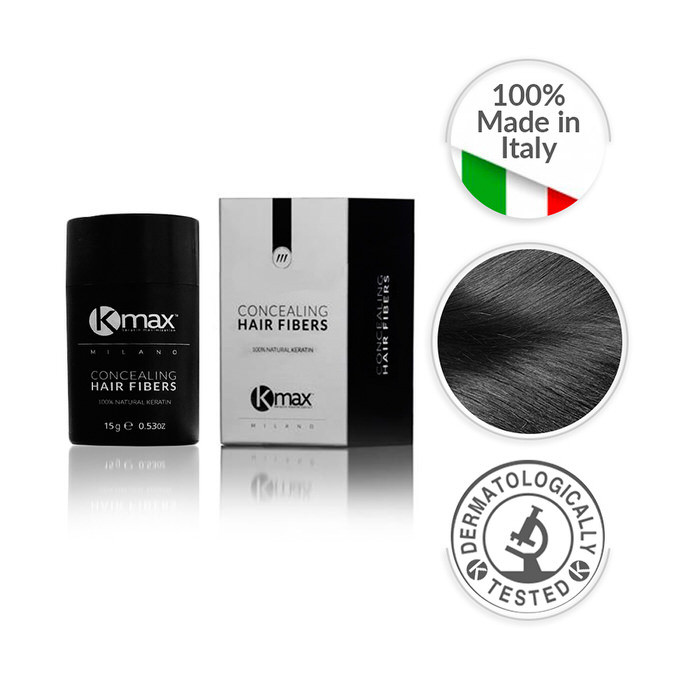 Las fibras capilares KMax son un producto 100% natural, compuestas un 99,9% de keratina y un 0,1% de silicio orgánico. Es el único densificador capilar que ha sido probado dermatológicamente con unos resultados que avalan su alta calidad, determinando que su uso no perjudica el cabello ni obstruye el poro.