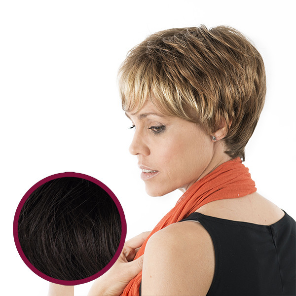 Peruca de fibra com monofilamento parcial.